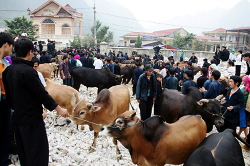 En cada concurrencia se comercian cientos de mansos. Este también es un destino de visitantes extranjeros. El matrimonio De Marco de Italia llegó por primera vez a Ha Giang y fue realmente atraído por esta plaza singular. El viajero italiano manifestó: “Lo importante consiste en que en el bazar de Ha Giang se venden animales domésticos como bueyes, cabras y aves. Esta feria es bastante especial, porque en Italia, mi tierra natal, no existe ninguna como ésta donde se pueden conseguir toros o aves en el camino. Por lo tanto, esta práctica es muy especial y me interesa mucho.”