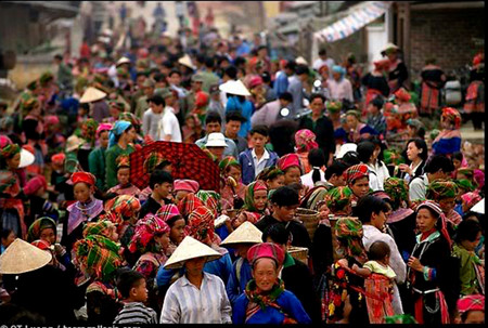 ![]() El mercado multicolores de Meo Vac, en la provincia montañosa septentrional de Ha Gang