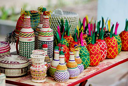 A lo largo del camino que conduce a la zona de las históricas Capillas de Piedra Phat Diem, distrito Kim Son, se venden en las tiendas de recuerdos numerosas bolsas, sombreros, sandalias y floreros multiformes y coloridos de junco elaborados por talentosos autóctonos. En los días de sol se encuentran muchas haces de esparto verde, secas y teñidas en el dique, céspedes y paredes, y se percibe el aroma de esta planta de la familia de las juncáceas.