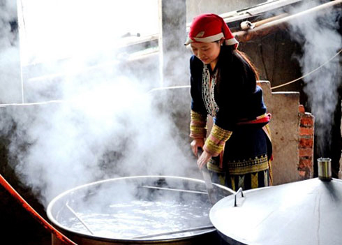 Mientras echa más hojas medicinales en la olla de agua hirviente, Dang Thai Vinh ejecuta movimientos parecidos a los servicios brindados por los Dao rojos a los excursionistas. “El baño con agua de hojas medicinales es muy bueno para la salud. Para llegar a esta tierra mi familia tuvo que caminar l3 kilómetros con mucho cansancio. Sin embargo, después de bañarnos, nos sentimos muy pronto restablecidos”.