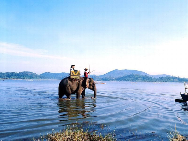 Según la leyenda de los M’Nong, antaño, el Genio del Fuego venció al del Agua después de un combate prolongado, haciendo que las aldeas M’Nong se hundieran en la sequía. En ese tiempo, un joven valiente fue a buscar agua para salvar al pueblo, llevando a los M’Nong a vivir en esta zona que es hoy el lago Lak. La charca se sitúa cerca de la cabecera Lien Son, distrito Lak, a 52 kilómetros al Sur de la ciudad Buon Ma Thuot, provincia Dac Lak. Tiene una superficie de 500 hectáreas a 500 metros sobre el nivel del mar. Desde lejos se ve la laguna como una suave cinta de seda azul, creando paisajes pintorescos y atractivos con bosques y montañas majestuosos de la Altiplanicie Occidental. Alrededor del lago hay un sistema de fauna y flora exuberante con bestias endémicas preciadas inscritas en el Libro Rojo. En especial, la zona cuenta con el mayor número de elefantes domados en Vietnam. Por eso, lo más impresionante para los visitantes consiste en la imagen de los domadores que montan en lomo de elefantes, paseando por los caminos. De vez en cuando se ve una manada de paquidermos bañándose en el río o de regreso al villorrio al atardecer. Este panorama especial hace que el estuario siempre resulte atractivo para los excursionistas. Nguyen Manh Ha, turista de la ciudad Hai Phong, dijo: “Al llegar a la albufera Lak los visitantes pueden elegir distintas formas turísticas como montar en elefante o pasear por el lago en bote. También pueden recorrer las aldeas de los M’Nong o entrar en los bosques para descubrir la vida de los pájaros y otros animales. He viajado a muchos lugares, pero en el lago Lak hay cosas especiales que no existen en otras localidades.”