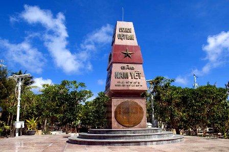 Recorriendo centenares de millas náuticas rumbo a la isla de Truong Sa Lon (Gran Truong Sa) desde la provincia costera de Khanh Hoa, se puede divisar en la lejanía el rojo de la bandera nacional, conmoviendo a los compatriotas en tierra firme. Al atravesar las iniciales líneas de “La República Socialista de Vietnam – Isla de Truong Sa” entramos en un espacio grande como un palacio en cuyo centro se encuentra un mojón soberano. Se trata de un promontorio cuadrangular, en cuya cima se destaca el escudo y el nombre del país, y debajo la bandera nacional y la señalización “Isla de Truong La: latitud 08-38´-30´´ y longitud 111-55´-55´´". En 4 caras del pie de la obra está grabada la imagen del tambor de bronce, símbolo de la gran unidad nacional. El coronel Dinh Van Hai, residente en la isla de Truong Sa Lon, dijo: “Truong Sa Lon es la cabecera del distrito insular de Truong Sa. El poste soberano de allí está hecho de un material sólido. Hay otra obra que reafirma la soberanía nacional, que es la bandera de cerámica en el hito soberano”.