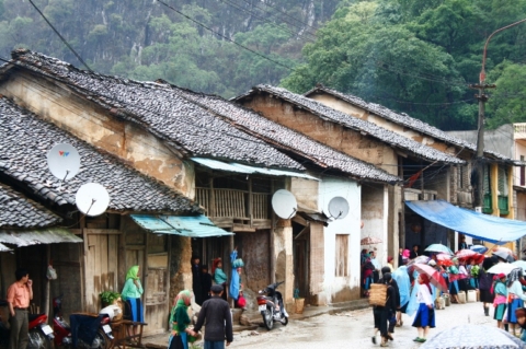 Además de contemplar la belleza majestuosa de altas montañas de Ha Giang, para comprender más profundamente la vida de las minorías étnicas locales pueden asistir al mercado de Dong Van famoso por sus brocados multicolores y actividades peculiares. Esta feria se celebra el sábado y el domingo de cada semana en el centro de la cabecera homónima. Quizás los lugares más animados y atrayentes para los clientes y turistas son los comedores.