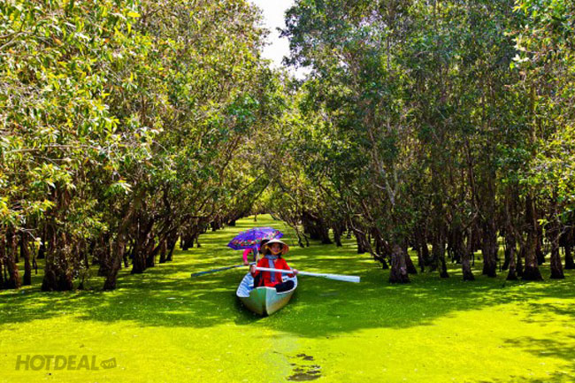 ![]() Los excursionistas pueden visitar el bosque de cayeputi de Gao Giong en barca de ramo
