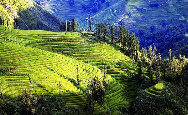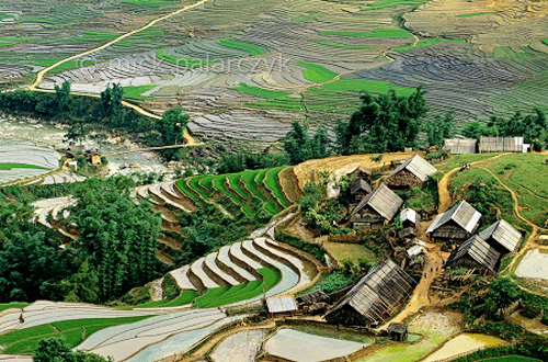 Aquí las terrazas de sembradíos están intercaladas entre las viviendas de los lugareños. Estos terrenos cultivables son los más lindos de Sapa, pertenecientes a 3 comarcas Lao Chai, Ta Van y Hau Thao y reconocidas por la organización Guiness de Vietnam como el Mayor Conjunto de Terrazas del País. También son obras artísticas creadas por las manos del hombre. En los últimos tiempos, cada dos años, Nguyen Trong Thanh y sus amigos acuden a Muong Hoa para tomar fotos de las terrazas. “Nos gusta más el arroz maduro en agosto y septiembre cuando las pendientes están cubiertas por el color amarillo del cereal que parece un mar. Entonces ese color del arroz, el verde de las montañas y el azul del cielo conforman un panorama que merece captarse en fotos. En la estación lluviosa, las terrazas también resultan muy hermosas”