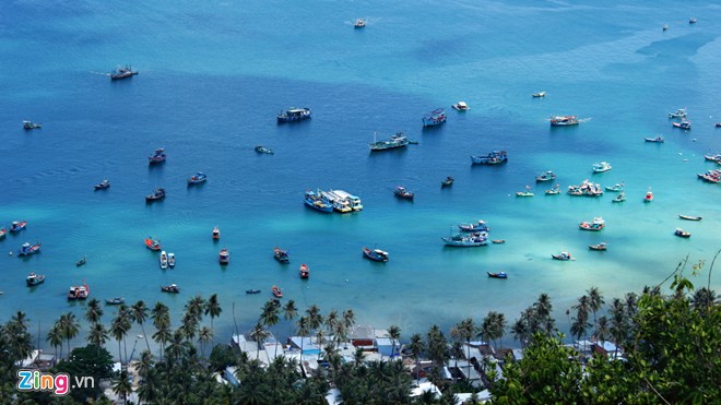 En motos alquiladas, recorrimos Hon Lon, llamada también Cu Tron, sobre la carretera de cerca de 12 kilómetros que se extiende a lo largo de esta isla. Desde una altura de 300 metros sobre el nivel del mar, contemplamos islas e islotes cuyas bellas siluetas se imprimen en el fondo azul del mar y cielo de Nam Du. En las aldeas pesqueras situadas a lo largo de la orilla del mar, sus pequeñas casas dejan entreverse bajo la sombra de infinitas hileras de cocoteros, y a lo lejos se encuentran cientos de embarcaciones en el agua.