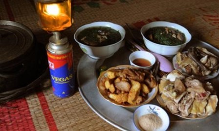 ![]() Unas comidas típicas preparadas por los Tay en la comuna Tha