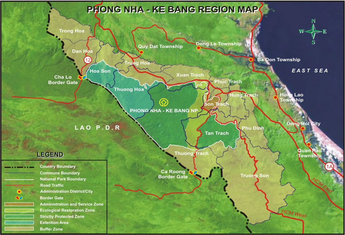 (VOVworld) – El Parque Nacional Phong Nha - Ke Bang está ubicado en el norte de la cordillera de Truong Son, abarca fronteras administrativas con los distritos Bo Trach, Quang Ninh, Minh Hoa (principalmente Bo Trach); se evalúa como una de las 238 regiones ecológicas de importancia mundial, es la mayor región del Carso, con una superficie de más de 200.000 hectáreas.