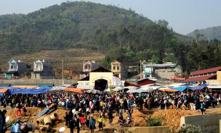 La quietud de la comuna de Pho Bang cesa cada vez que se celebran las ferias mercantiles tradicionales. Situadas en una de las dos calles principales del centro del poblado, las ferias tradicionales en Pho Bang se hacen cada 6 días. En esos días, los habitantes se despiertan desde la madrugada, llevan por sí mismos productos y herramientas agrícolas a vender en el mercado y también comprar productos para satisfacer las necesidades básicas. Duran poco tiempo, y cuando terminan, la localidad se vuelve a su ritmo normal. Por ser organizadas cada 6 días, las ferias de Pho Bang se denominan “cho lui” porque si esta sesión del mercado se celebra en el sábado, la próxima se celebrará el viernes y la siguiente, el jueves. Gracias a estos mercados, los locales pueden comprar productos suficientes para su vida cotidiana para una semana entera, y se espera hasta la siguiente semana para volver a comprar más.