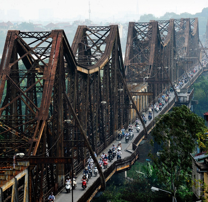 Hoy día, el puente de Long Bien sigue siendo un viaducto importante de Hanoi