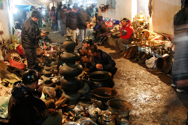 Visitantes compran objetos en el mercado en esperanzas de la suerte y fortuna