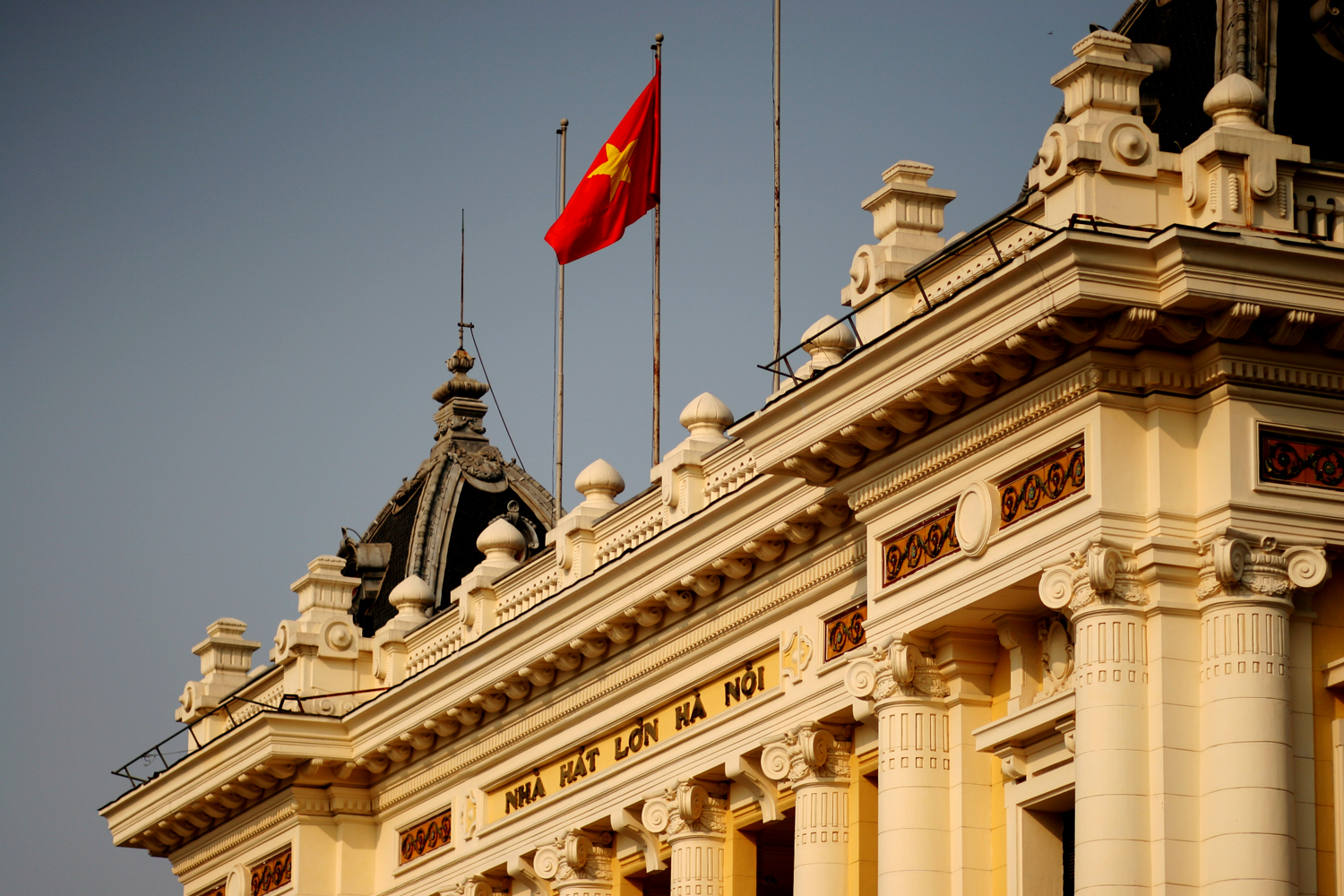 El Teatro de la Opera se sitúa al final de la calle Trang Tien en el centro de Hanoi a varios cientos metros del Lago de la Espada Restituida, lugar pintoresco de la urbe. Fue valorado por los arquitectos japoneses como la construcción más hermosa del Sudeste Asiático. Su edificación se inició en l90l y concluyó en l9ll bajo la dirección de dos ingenieros franceses Travary y Savelon. El coliseo se construyó según el modelo del Teatro de la Opera Garnier en París, por eso, el plano, el espacio de representación, las escaleras y entradas en los balcones son semejantes a los teatros europeos a principios del siglo XX. Esta sala de espectáculos tiene una superficie de 2 mil 600 metros cuadrados, 87 metros de largo, 30 metros de ancho y 34 metros de altura. La fachada tiene amplias escalinatas dirigidas a una plaza. Los diseñadores consultaron la arquitectura griega antigua para crear una obra singular. El edificio cuenta con un amplio escenario y una sala de 870 asientos. Las sillas están cubiertas de piel y terciopelo. En los segundo y tercer pisos hay lotes reservados a invitados especiales y sus familiares. En la parte trasera se encuentran los recintos administrativos, camerinos de actores, áreas de ensayos de canto, biblioteca y sala de reuniones. Cerca del pasillo del segundo piso está una lujosa galería de espejos para recepciones y buffet.