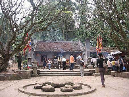 El complejo de vestigios de los reyes Hung está compuesto por 4 templos: Ha (Inferior), Trung (Medio), Thuong (Superior) y Gieng (Pozo), la pagoda Thien Quang Thien Tu y una sepultura. Al pie de la montaña se encuentra el Templo Gieng, en cuyo centro hay un pozo. La leyenda relata que ahí las princesas Tien Dung y Ngoc Hoa, hijas del Rey Hung XVIII, solían mirarse, lavarse el rostro y peinarse. Luego, viene el Templo Ha. Según historias transmitidas entre el pueblo, en lugar la madre Au Co dio a luz una bolsa de huevos de la que salieron cien hijos, considerados los primeros vietnamitas, fundadores de la nación. A la derecha del Templo Ha, está la pagoda Thien Quang Thien Tu, y detrás se encuentra el Templo Trung, donde antaño los reyes Hung se reunían con sus generales y mandarines para tratar los asuntos nacionales o descansar. También ahí el príncipe Lang Lien ofrecía los pasteles de arroz glutinoso banh chung y banh day a sus padres, para expresar su gratitud y glorificar los recursos del país. Por último, en el templo superior, el sexto rey Hung practicaba el culto a la tierra y al cielo, e invocaba a los genios de la montaña y del arroz.