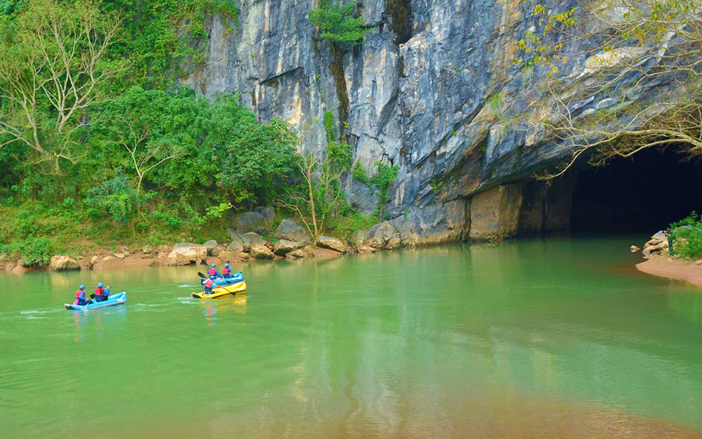 Turistas descubren en kayak la cueva de Phong Nha, en la provincia central de Quang Binh. (Foto: nhandan.vn) |