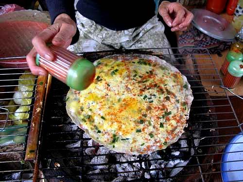 El “Bánh Tráng” (torta delgada de masa de harina, huevo de gallina, cebolla y manteca) asado sobre carbón atrae a muchos comensales. Nguyen Thi Kim Oanh, vendedora de este pastel dijo: “Los habitantes de Da Lat inventaron el “Bánh Tráng”. Generalmente vendo desde las 3 de la tarde hasta las ll de la noche. La mayoría de los clientes son visitantes y los lugareños ingieren estas tortas los sábados y domingos cuando pasean por la calle peatonal. Hay personas que la llaman pizza de Da Lat”, porque al igual que las originales italianas lo mismo se puede comer sentado a una mesa, que mientras se camina.
