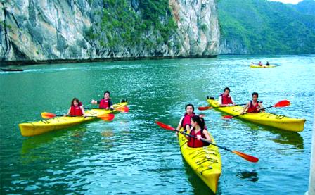 En la bahía de Ha Long, los turistas pueden degustar frutos del mar y también pueden experimentar la vida de los pescadores locales al participar en los programas de turismo comunitario o caritativo. Para quienes buscan aventuras, la isla de Cat Ba parece un destino ideal, donde les esperan diversas actividades deportivas, desde la escalada de acantilados, el buceo y el ciclismo, hasta el kayak, el esquí acuático y el paseo en vela… Hay muchas opciones para los aventureros amantes del mar. Para satisfacer a los clientes, las agencias de viaje se han concentrado en renovar cada día sus ofertas turísticas y crear itinerarios más interesantes. Ghe Xanh, es una de las dos agencias que explotan este tipo de viaje en la isla de Cat Ba. Su director, Le Manh Kien dio a conocer: “Proponemos nuevas ofertas a los turistas más aventureros: el buceo y el descubrimiento de las grutas. Lo que difiere de la visita de las cavernas de Cat Ba a la de la bahía de Ha Long, es que aquí, se puede entrar en kayak, pero para salir, se debe practicar el buceo a través de los túneles.”