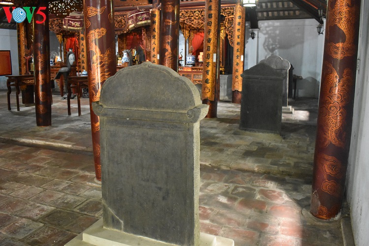 Al final del camino principal que atraviesa el campanario y dos pabellones de exposiciones de imágenes y objetos relacionados con el desarrollo del sector educativo local, se encuentra el santuario en homenaje a Confucio y al profesor Chu Van An. Toda la sala está decorada con pilares lacados en rojo con ribetes dorados y pareados antitéticos chinos en las paredes. Nguyen Thi Lien dijo: “Aquí podemos contemplar nueve estelas de piedra de los 168 premiados entre los 228 doctorados feudales de Hung Yen. En el pasado, dicha cifra representaba el 10% del número de los galardonados de los exámenes imperiales, lo que convirtió a esta provincia en la cuarta de todo el país con mayor tasa de laureados. Ocho de estas estelas fueron erigidas en el tercer año del reinado Dong Khanh, en 1888, y la última en el octavo año del reinado Bao Dai, en 1943.”