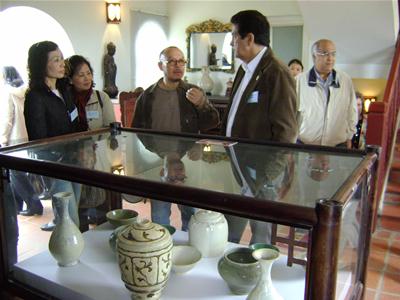sobre antiguos objetos de cerámica expuestos en la mansión