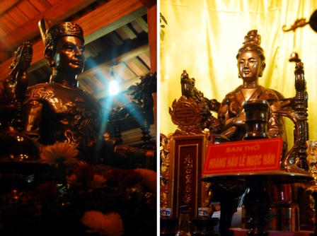 Estatuas del emperador Quang Trung y la reina Ngoc Han en el santuario