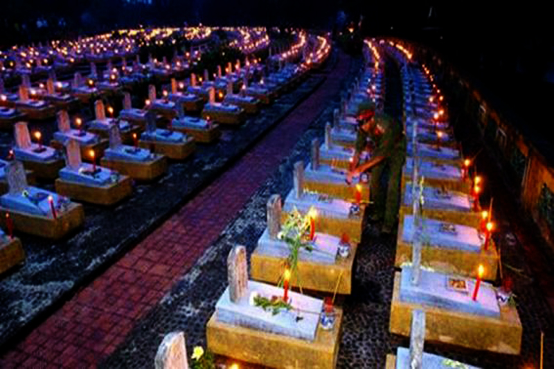 (VOVworld) - En julio, los caminos conducentes al cementerio de Truong Son en la comuna de Vinh Truong, provincia central de Quang Tri, suelen animarse con la circulación de vehículos y peregrinos. En esa corriente humana hay veteranos que peinan canas, esposas, padres, hijos y otros visitantes que llegan al Campo Santo para encender inciensos en honor a los héroes y mártires caídos por la independencia y la libertad de la Patria.