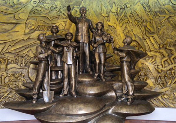 Estatuas del presidente Ho Chi Minh con tropas de Truong Son atraen