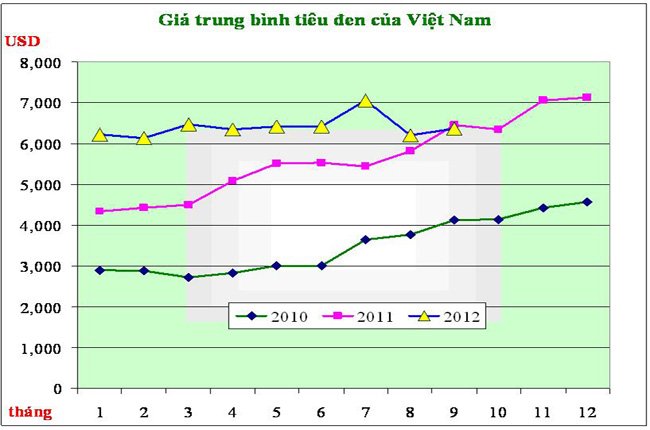 El gráfico del precio promedio de pimienta exportada de Vietnam