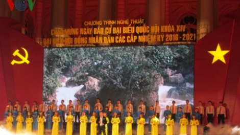 (VOVworld) – El programa artístico titulado “La jornada festiva del país” tuvo lugar este 21 de mayo en la Plaza de la Revolución de Agosto, en la capital de Hanoi, para saludar las elecciones de la Asamblea Nacional de Vietnam, XIV legislatura, y de los Consejos Populares de diferentes niveles, mandato 2016-2021.