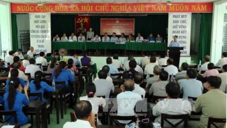 (VOVworld) – El miembro permanente del Secretariado del Comité Central del Partido Comunista de Vietnam, Dinh The Huynh, junto con los miembros de la unidad electoral número 1 de la ciudad central de Da Nang, que presentan candidatura a cargos de diputados parlamentarios y de Consejos Populares de todos los niveles, mantuvieron este 5 de mayo encuentros con el electorado del distrito de Hai Chau de dicha localidad.