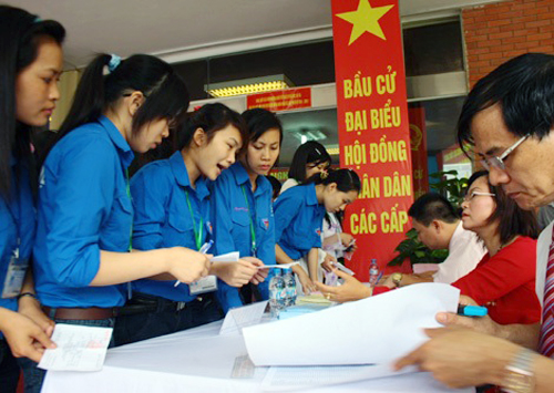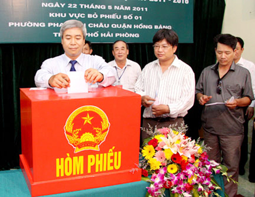 ![]() Un colegio electoral en la ciudad de Hai Phong en la fecha de elecciones parlamentarias de la XIII legislatura, el 22 de mayo de 2011