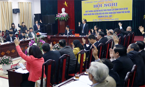 ![]() El 100% de los electores de la ciudad de Hanoi aprobaron la lista de 48 candidatos a cargos del Parlamento vietnamita de la XIV legislatura y los Consejos de todos los niveles, mandato 2016 – 2021