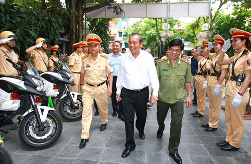 El viceprimer ministro Truong Hoa Binh chequea los preparativos de la Policía de Tránsito de Hanoi para la fecha electoral