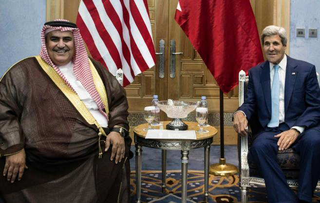 John Kerry (d.), junto al ministro de Exteriores de Bahrein, en el aeropuerto