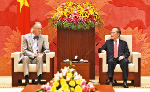 El presidente del Parlamento de Vietnam, Nguyen Sinh Hung (d) recibe al