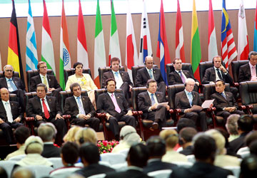La esperanza se abrió también en la primera sesión a puerta cerrada sobre “los asuntos económicos- financieros”, cuando los líderes de Asia y Europa reafirmaron su voluntad de promover un desarrollo económico más rápido, sostenible, equilibrado y equitativo entre ambos continentes, teniendo muy en cuenta la cooperación financiera, el aumento de la conectividad, la facilitación del comercio y la inversión, la generación de empleos, la recuperación de la confianza de los mercados, y el incremento de la transparencia para una reforma cabal del sistema financiero. Asimismo concordaron en continuar empeñados en renovar la gestión económica en las instituciones financieras internacionales, sobre todo el Fondo Monetario Internacional y el Banco Mundial, poniendo de relieve las economías emergentes y en vías de desarrollo. Además manifestaron su apoyo al sistema de comercio multilateral y un fin exitoso de las negociaciones de Doha.