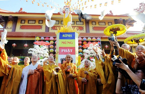 ![]() Rito de liberación de palomas en el Vesak 2013 en la pagoda de Pho Quang, en el distrito de Tan Binh, Ciudad Ho Chi Minh (Foto: VNA)