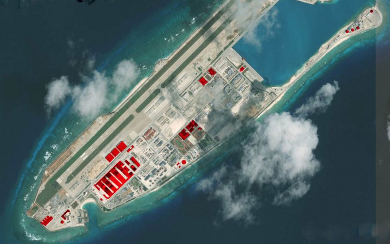 El arrecife Chu Thap o Fiery Cross Reef perteneciente a la soberanía marítima vietnamita en el Mar Oriental es renovada ilegalmente por China (Foto: CSIS/AMTI) |