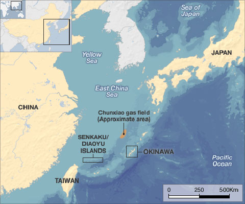 Ubicación en mapa de las islas en litigio entre China y Japón