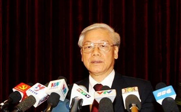 El Secretario general del PCV, Nguyen Phu Trong en la sesión de clausura de