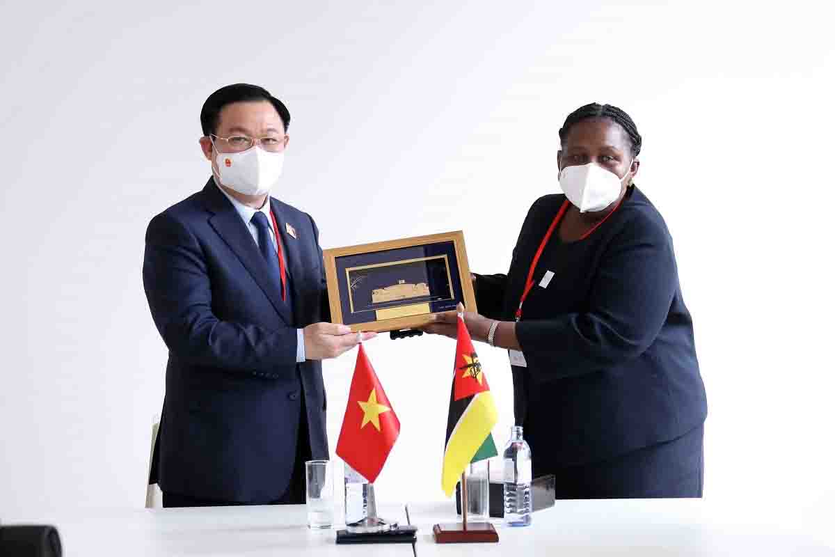 Durante los últimos años, la cooperación legislativa binacional se ha mantenido, principalmente en el marco de foros parlamentarios multilaterales. En el quinto Congreso Mundial de Presidentes de la Asamblea Nacional (WCSP5) celebrado en septiembre de 2021 en Austria, el presidente del Parlamento vietnamita, Vuong Dinh Hue, se reunió con la presidenta de la Asamblea Nacional de Mozambique, Esperança Laurinda Francisco Nhiuane Bias. Los dos dirigentes acordaron fortalecer el intercambio de experiencias en las actividades parlamentarias de cada territorio, además de coordinar en el seguimiento e impulso de la implementación de los acuerdos de cooperación suscritos por los Gobiernos de los dos países. Ambas partes también afirmaron el apoyo al Gobierno, las localidades, las empresas y la población de las dos naciones para expandir los intercambios, promover la cooperación y mejorar el entendimiento mutuo. En la reunión, Vuong Dinh Hue afirmó que el Estado y el pueblo de Vietnam siempre otorgan gran importancia a promover la amistad tradicional y la cooperación multifacética con Mozambique, uno de los socios importantes de su país en África.