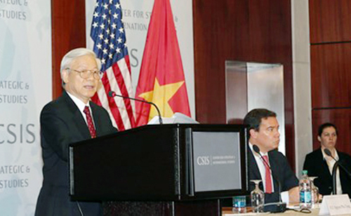 (VOVworld) – El secretario general del Partido Comunista de Vietnam, Nguyen Phu Trong se reunió con representantes del Centro del Estudios Estratégicos e Internacionales de Estados Unidos en Washington. En su discurso pronunciado, Nguyen Phu Trong destacó los beneficios recíprocos y trazó tareas para elevar los lazos bilaterales a un nuevo nivel.