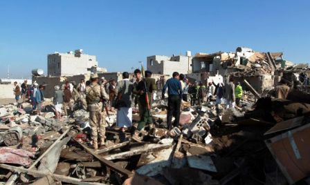 inspeccionan los daños causados por los bombardeos saudíes