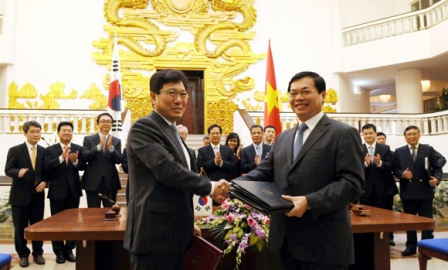 ![]() El ministro de Industria y Comercio de Vietnam, Vu Huy Hoang, y el ministro de Comercio, Industria y Energía de Corea del Norte firman el Acuerdo de Libre Comercio bilateral |