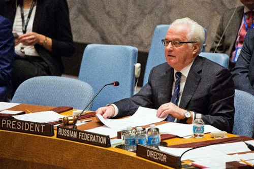 ![]() El embajador de Rusia, Vitaly Churkin en la reunión del Consejo de Seguridad de la ONU sobre el borrador de Francia en cuanto a la crisis siria (Foto: AFP)