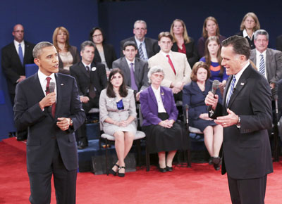 (VOVworld) – El presidente estadounidense, Barack Obama y su contrincante del Partido republicano Mitt Romney, volvieron a verse las caras en su segundo debate televisado este miércoles después de dos semanas del primer encuentro, enfocándose en asuntos internos. Las encuestas muestran una carrera igualada entre ambos aspirantes a regir en la Casa Blanca, dificultando los pronósticos sobre el vencedor de las elecciones del próximo 6 de noviembre.