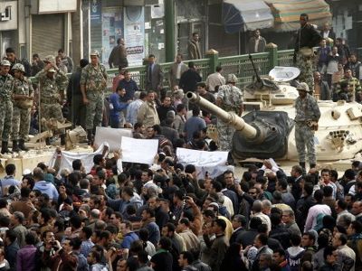 El 11 de febrero del año pasado, Hosni Mubarak renunció tras 3 décadas en el poder, y el derrocamiento de su régimen se produjo sólo después de 18 días de manifestaciones en todo el país. Desde entonces, el Consejo Supremo de las Fuerzas Armadas de Egipto tiene las riendas del poder. La peor tragedia de Egipto es que el fin del viejo tiempo no marca el comienzo del nuevo. La celebración de las elecciones legislativas no satisface a los políticos progresistas y activistas. Se prevé que los comicios presidenciales se efectuarán en junio próximo y la prensa gozará de una mayor libertad, sin embargo, el Consejo militar supremo, compuesto por 20 generales y dirigido por el mariscal Hussein Tantaoui aún lleva la batuta del gobierno, y la opinión pública estima que el Ejército está tratando de mantener, de alguna manera u otra, el control de Egipto después de las elecciones presidenciales. Se sospecha que las fuerzas armadas impondrán un candidato a la presidencia a favor de sus intereses y privilegios.