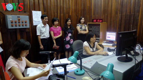 ![]() Editores e invitados de la Voz de Vietnam en un estudio de la emisora