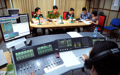 ![]() Periodistas de la Voz de Vietnam hacen locución en un programa en vivo