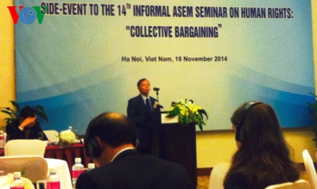 Como miembro activo de la Organización Internacional del Trabajo (OIT), Vietnam ha de promover activamente la ratificación de varios convenios de la OIT. Hasta 2014, este país indochino ha ratificado 21 convenciones concernientes. Las empresas nacionales han cumplido con seriedad las disposiciones estipuladas en los convenios pactados. Con el albergue de esta conferencia, Vietnam demuestra su sentido de la responsabilidad, dispuesto a contribuir al foro de ASEM. Además, en calidad de miembro del Consejo de derechos humanos de la ONU Vietnam respeta los valores universales de los derechos humanos y está dispuesto a dialogar para reducir las diferencias. En el proceso de reestructuración económica, Vietnam priorizará la protección de los derechos de trabajadores para mejorar la competitividad de la economía y avanzar hacia el desarrollo sostenible.