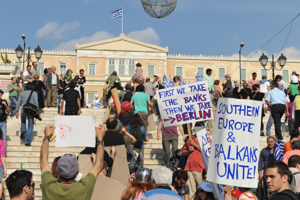 ![]() Ciudadanos griegos protestan las medidas de austeridad impuestas por los acreedores