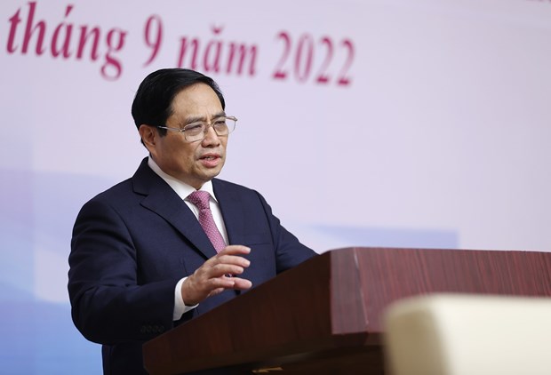 El primer ministro Pham Minh Chinh en la conferencia “Superar desafíos, aprovechar oportunidades y cooperar para el desarrollo”. (Foto: VNA) |